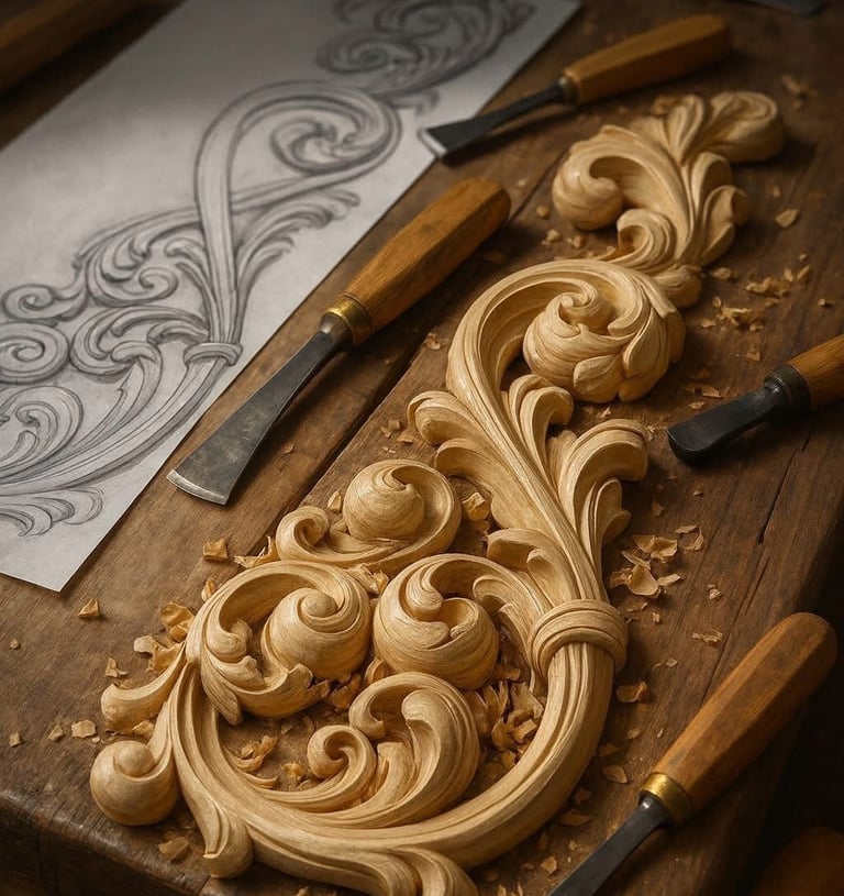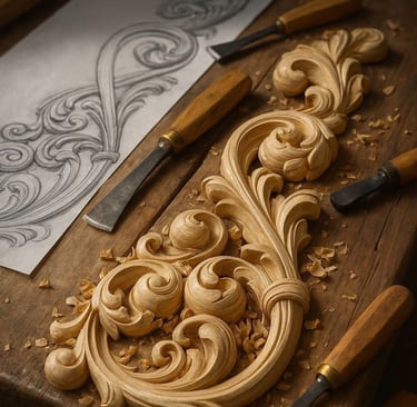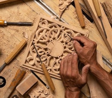 Meticulously carved wooden artifacts showcasing exceptional craftsmanship